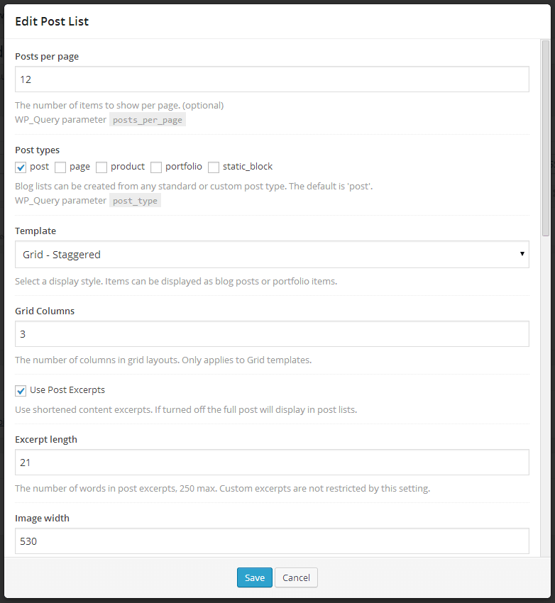 The portfolio shortcode can be added manually or using the content builder integrated into Visual Composer. When manually inserting the portfolio shortcode you can use the parameters below to customize the output.